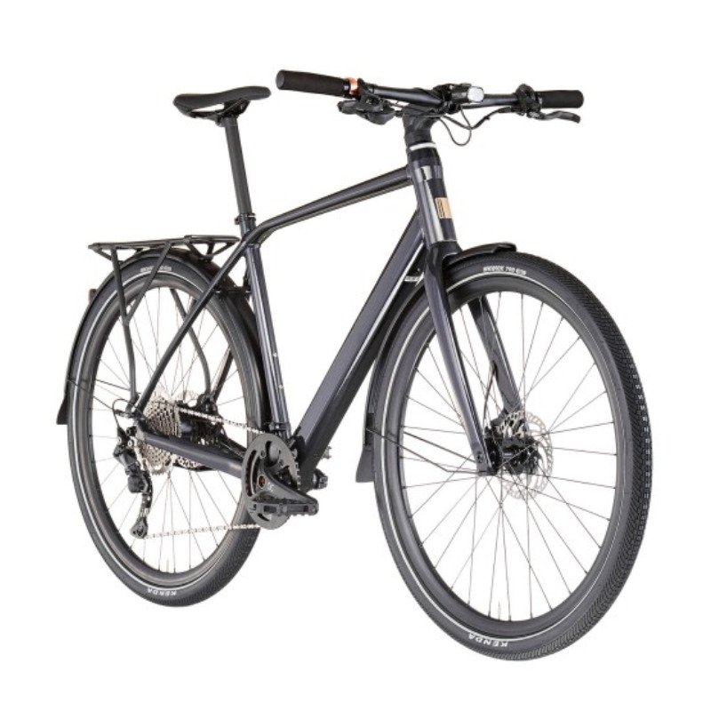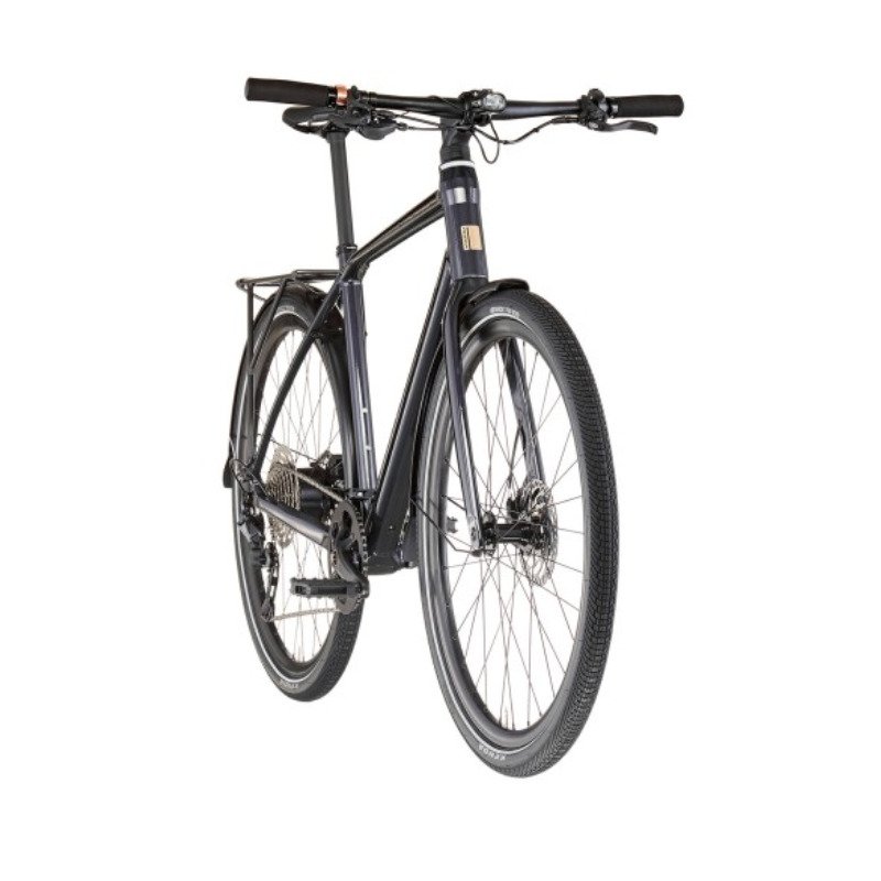 Pour la transmission, le Shimano Deore 10 vitesses assure des changements rapides et précis, tandis que les freins à disque hydrauliques Magura offrent un freinage puissant et sécurisé, même en conditions urbaines exigeantes.
