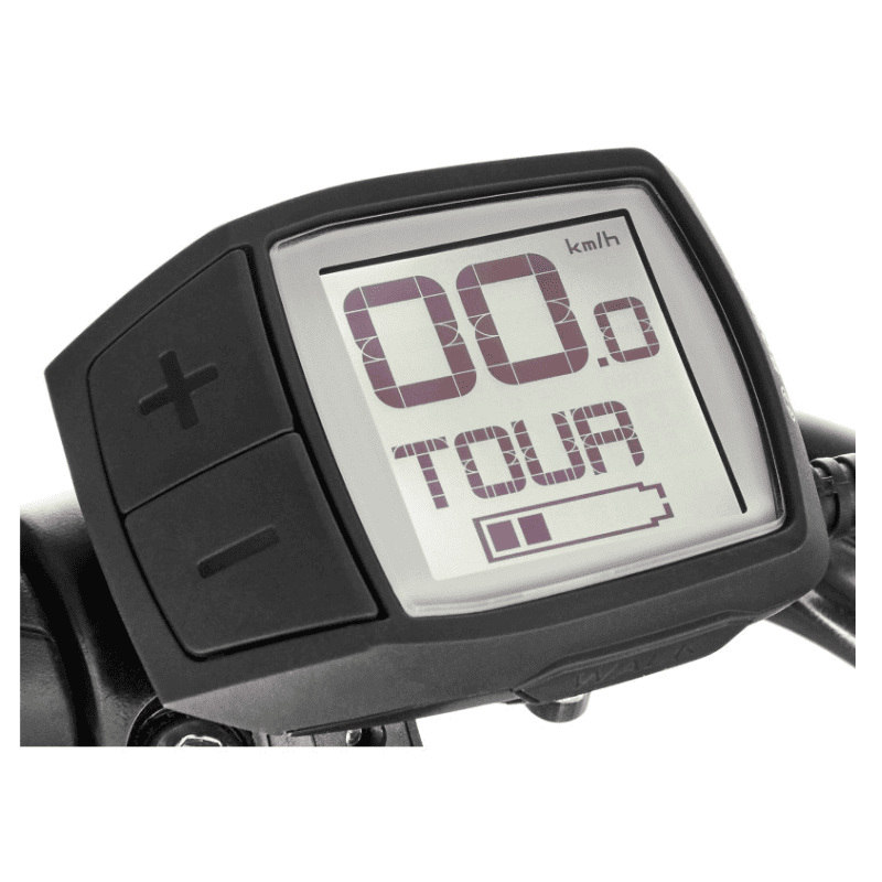 | Console | Bosch Purion : sélection et affichage niveau d’assistance (Off, Eco, Tour, eMTB/Sport, Turbo), aide à la marche, charge batterie, vitesses instantanée/moyenne/maximale, kilométrages journalier/total, rétro-éclairage |